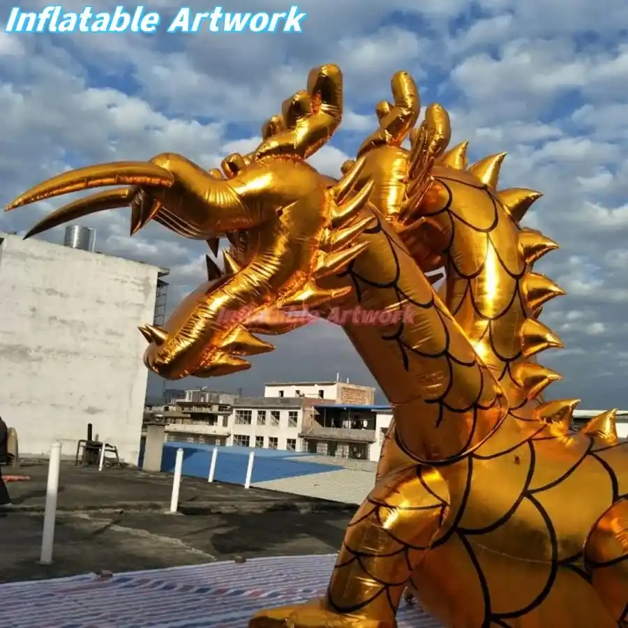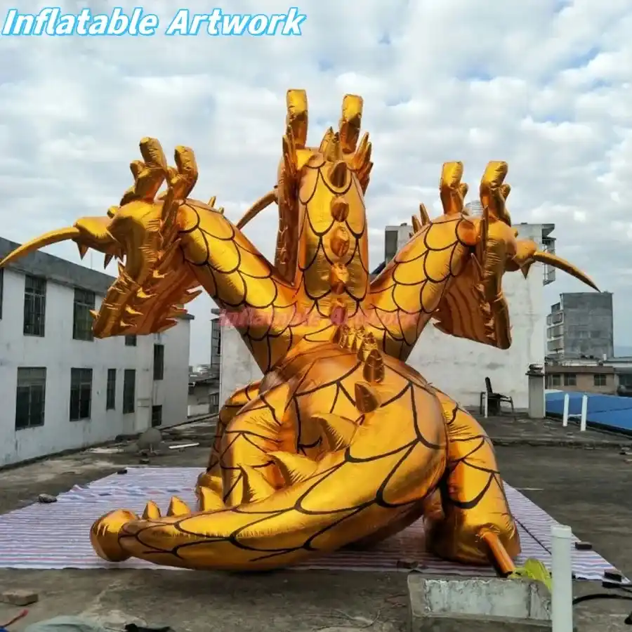 Customized Three Heads Air Blown Gold Dragon for Event Party Decoration